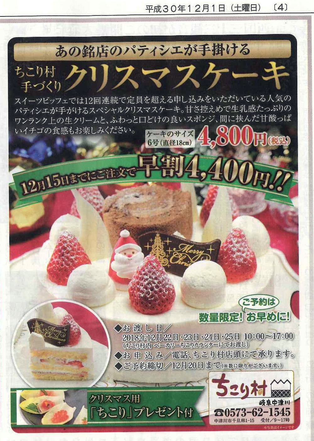 ちこり村の手づくりクリスマスケーキ販売中です。