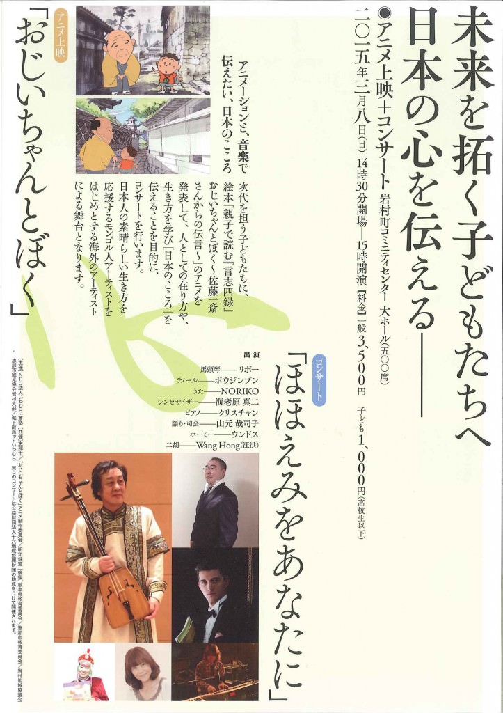 この度この『おじいちゃんとぼく』のアニメーションが完成し、アニメ上映+コンサートが開催されます。