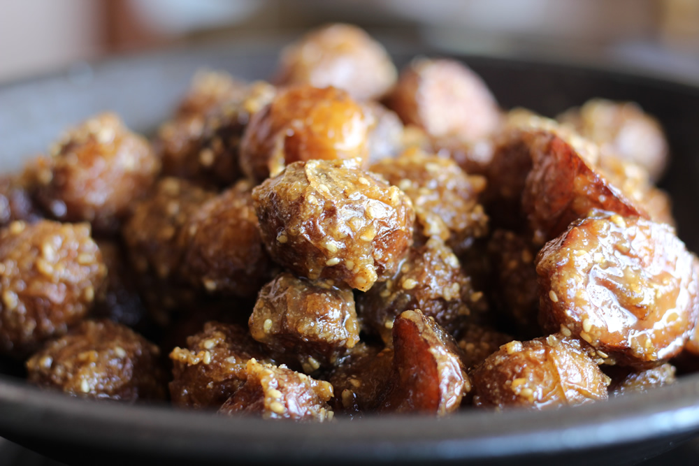 黒豆の色でほんのりと赤色に染まった酢飯と、赤カブの酢付けを載せた春らしいレシピ。