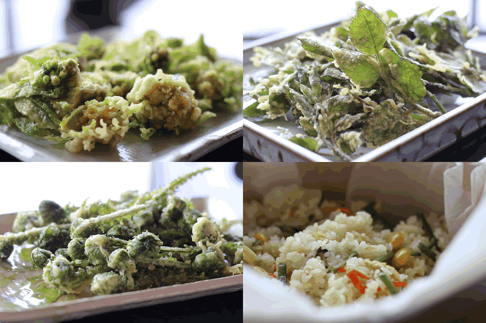 ちこり村バーバーズダイニングでは春の山菜フェア開催中です。