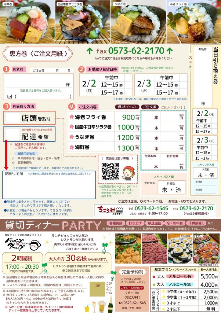 ちこり村特製 恵方巻2026