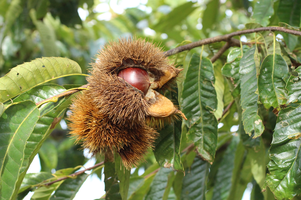 おしりが白いのは、まだ十分に熟してない栗。