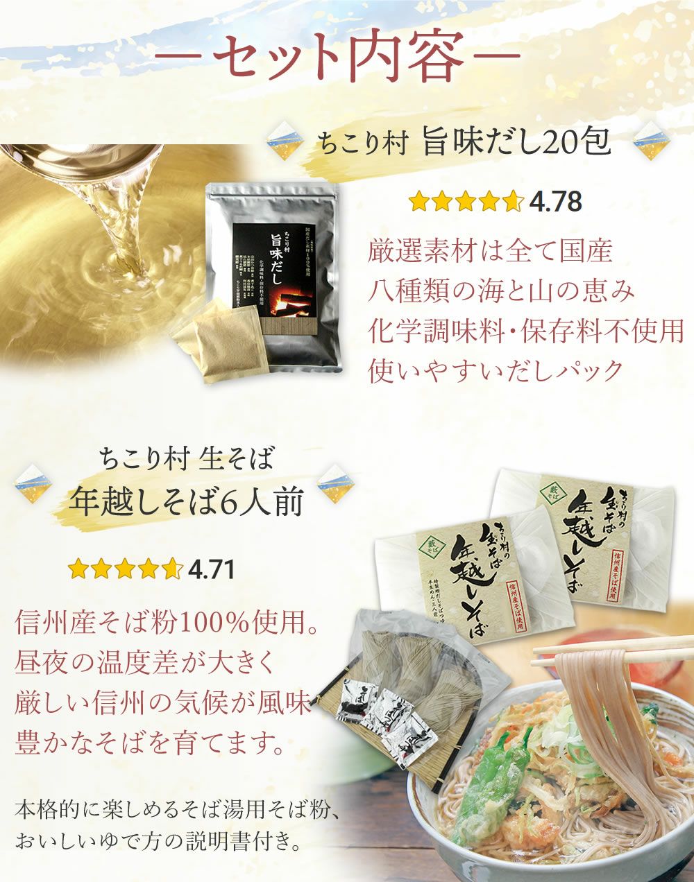 他の画像を見る 【10月10日迄のご注文限定価格】年末年始の食卓に! 年越しそば 旨味だし セット / 本場信州 年越し蕎麦 生 6人前 + 旨味だし 送料無料 / 午年 New! 着日指定不可 常温 送料無料 当店通常価格 ¥ 4,420 のところ 販売価格 ¥ 3,960 税込 販売を終了しました。 5.00 (1) 詳細を見る お気に入りに登録する