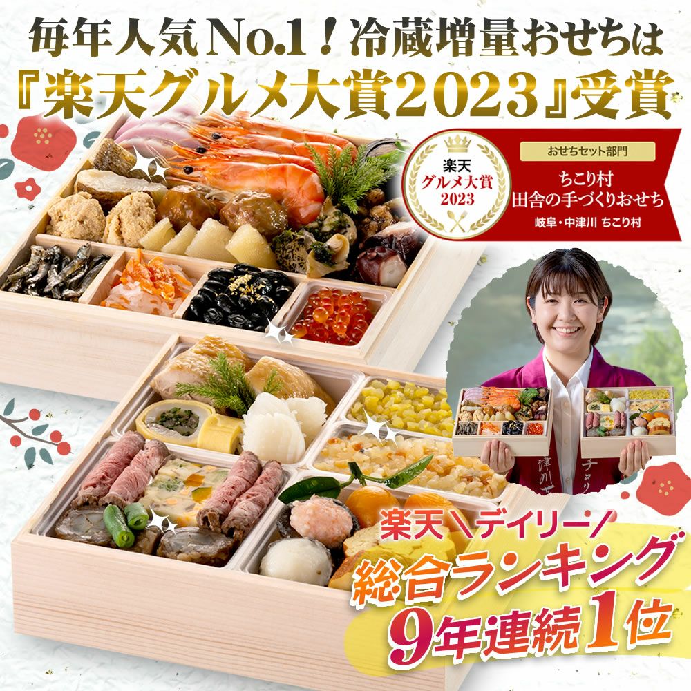 他の画像を見る 在庫切れ 楽天総合ランキング10年連続1位/冷蔵便でお届け/薄味ながら旨味たっぷり♪【お節料理/御節料理/お節/御節/生おせち】 おせち 2026 冷蔵便でお届け♪ ちこり村 田舎の手づくりおせち 【人気2品増量おせち】』二段重 3~4人前 送料無料 着日指定不可 冷蔵 送料無料 販売価格 ¥ 24,570 税込 販売を終了しました。 4.87 (299) 詳細を見る お気に入りに登録する