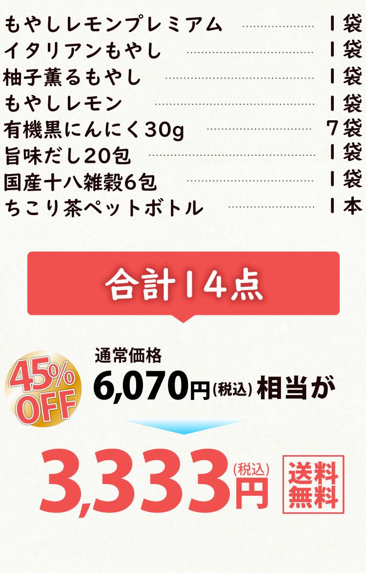 他の画像を見る 在庫切れ 3333ラッキーバッグ 2026福袋 3,333円 ちこり村おすすめセット 常温 送料無料 販売価格 ¥ 3,333 税込 販売を終了しました。 (0) 詳細を見る お気に入りに登録する