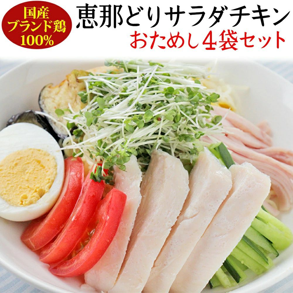 他の画像を見る 在庫切れ 国産鶏「恵那どり」100%使用やわらかくてジューシー! サラダチキン お試し4袋セットプレーン×2袋 ゆず×1袋 ほぐし×1袋 冷蔵 販売価格 ¥ 1,000 税込 詳細を見る お気に入りに登録する