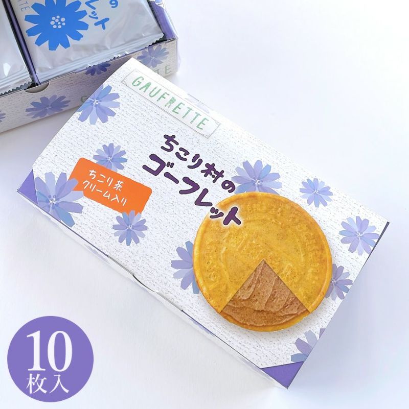 サクサクゴーフレットに香ばしいちこり茶クリームをはさみました。