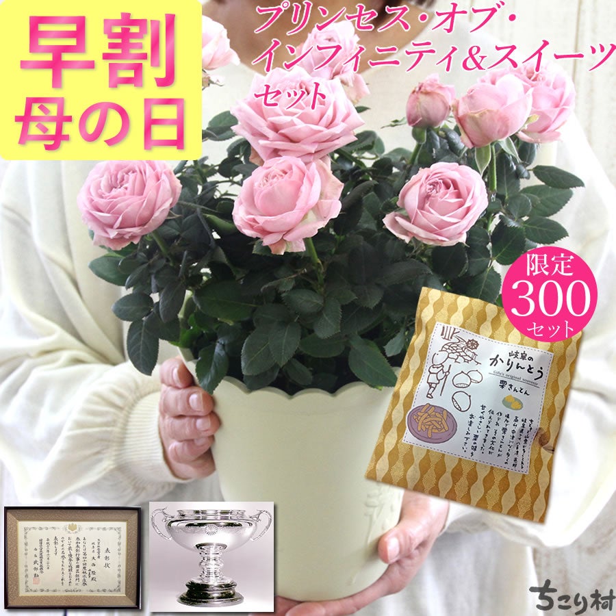 他の画像を見る 【300セット限定】【4/26まで早割】 \天皇杯受賞/ メアリー皇太子妃が命名・特別な品種のミニバラ/ 母の日ギフト プリンセス オブ インフィニティ6号鉢&スイーツセット【送料無料】 JP おすすめ 着日指定不可 常温 送料無料 当店通常価格 ¥ 4,980 のところ 販売価格 ¥ 4,480 税込 販売期間 2026/04/01 0:00 〜 2026/04/26 23:59 (0) 詳細を見る お気に入りに登録する