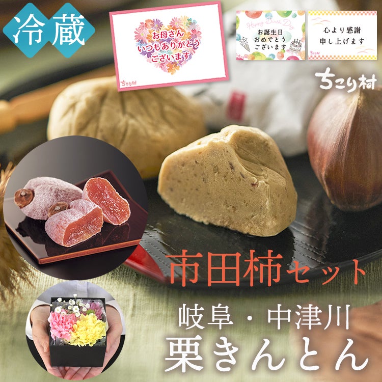 <贈り物に>市田柿1袋 + 栗きんとん6個<フラワーボックス付きも選べます> 【冷蔵便 送料無料】 母の日ギフトにおすすめ