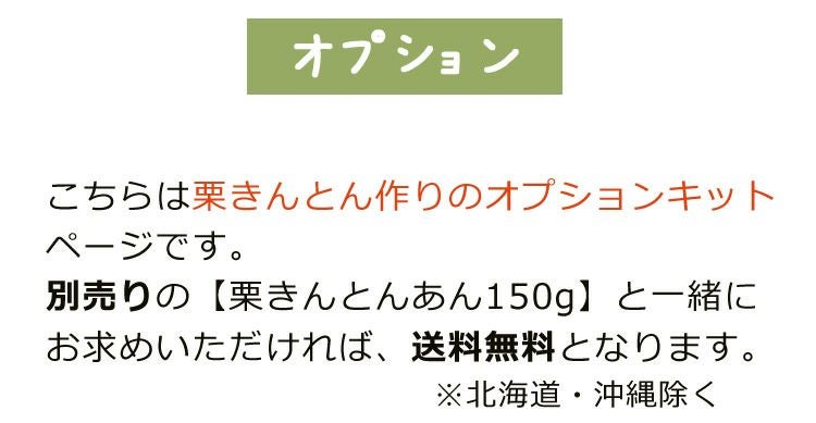 他の画像を見る おうち時間を応援!おうちで栗きんとん絞り体験 オプションキット※栗あんは付いてません箱・説明書・包み紙・茶巾 常温 販売価格 ¥ 500 税込 (0) カートに入れる お気に入りに登録する
