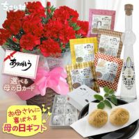 3年前から、ちこり村のカーネーションを購入しています。以前は、他の大手サイトの有名店のカーネーションを購入してきましたが、ちこり村の花は大変花持ちがよく、長い期間楽しめるのが決め手です。 最初は食パンを、昨年は栗きんとんとのセットを購入。どちらも美味しくいただきましたが、栗きんとんが特に秀逸でしたので、今年は栗きんとんにしました。 少し残念なのは、たまたまかもしれませんが、花の色が数種類あるようですが、3年とも同じ色でした。