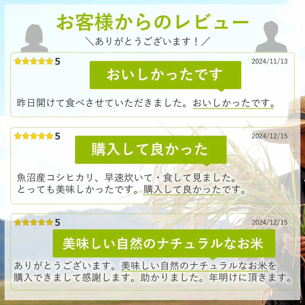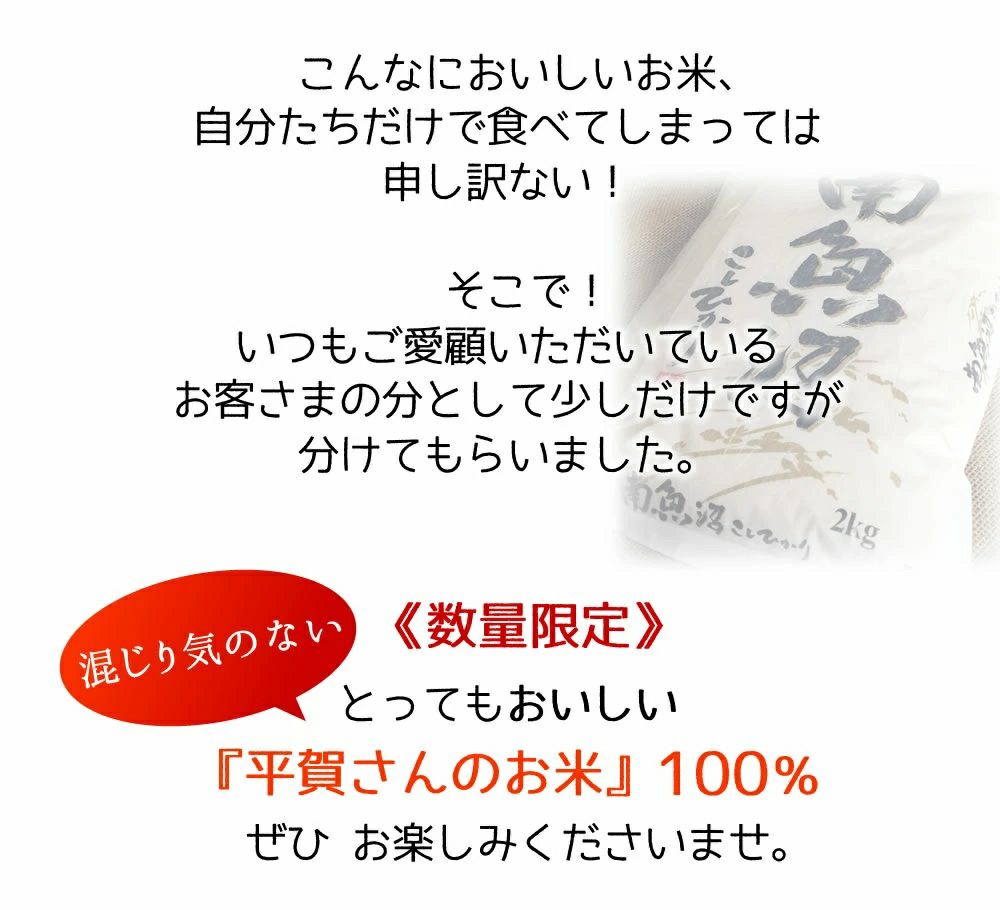 他の画像を見る 新潟県・南魚沼産/ 【新潟・南魚沼産】平賀さんのおいしいお米 2kg New! 常温 送料無料 販売価格 ¥ 3,000 税込 〜 販売価格 ¥ 税込 5.00 (1) 詳細を見る お気に入りに登録する