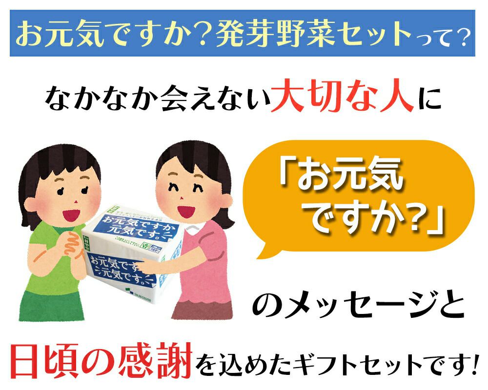 他の画像を見る 冬季限定 安全・安心な発芽野菜の詰合せ(もやし、スプラウト) 「お元気ですか?」新鮮発芽野菜(スプラウト)セット【送料無料】 冷蔵 送料無料 販売価格 ¥ 1,580 税込 販売期間 2025/11/10 0:00 〜 2026/02/28 23:59 5.00 (2) 詳細を見る お気に入りに登録する